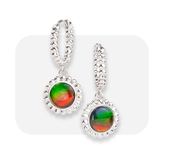 Ammolite is a precious gemstone highly coveted for its spectacular iridescence. Hand cut to maximise its brilliant colours, each stone is unique and no two are alike. Through fossilisation, tectonic pressure, heat and mineralisation, Ammolite has emerged as one of the world’s most sought-after gemstones, gaining more of a presence on the world’s stage through beautiful pieces of jewellery.