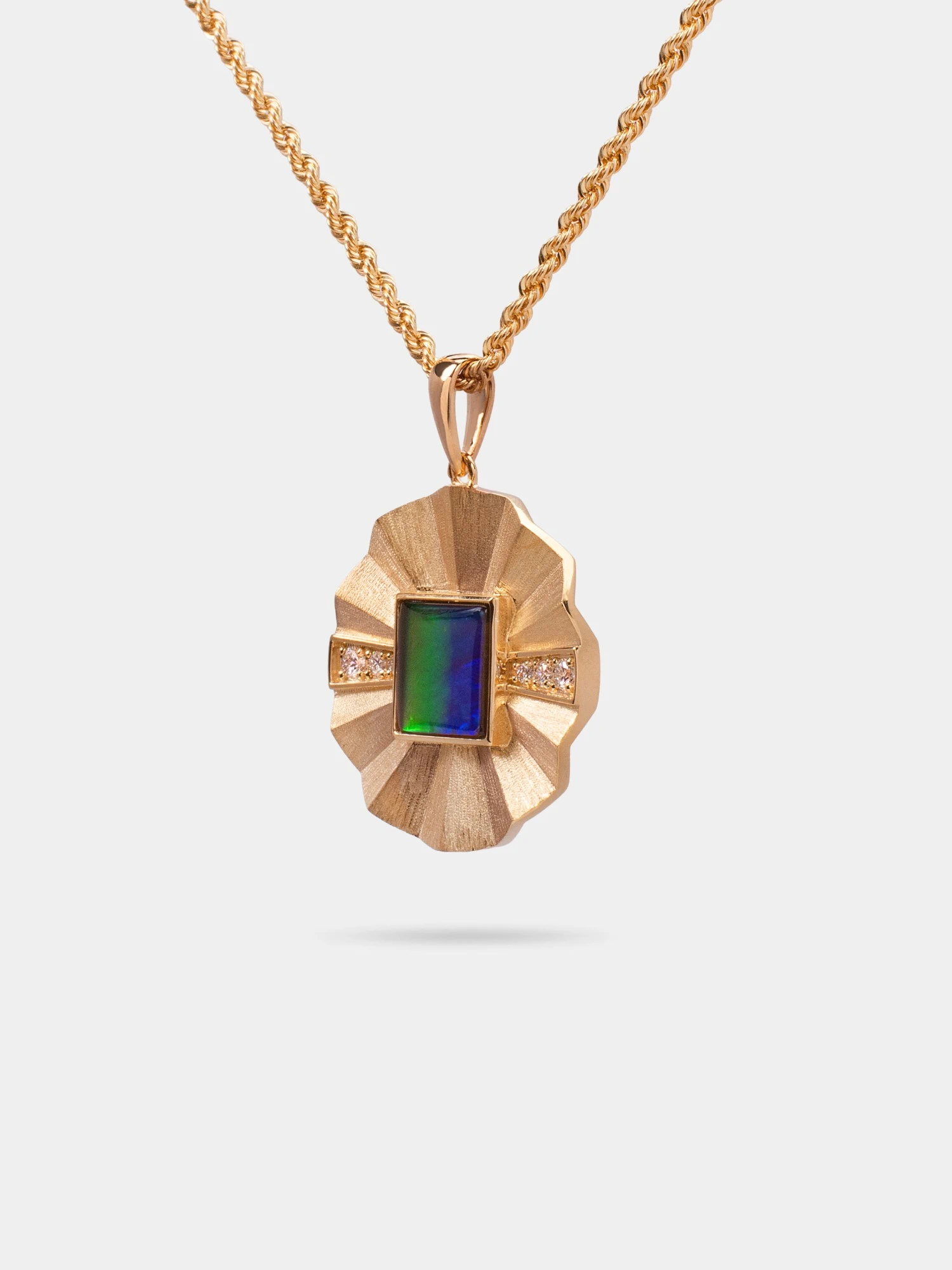 Built with the confidence of something meant to last, this pendant balances raw power against precision-crafted gold. Diamonds add subtle interruption, creating tension, contrast, and depth in a form that feels timeless yet unmistakably current.