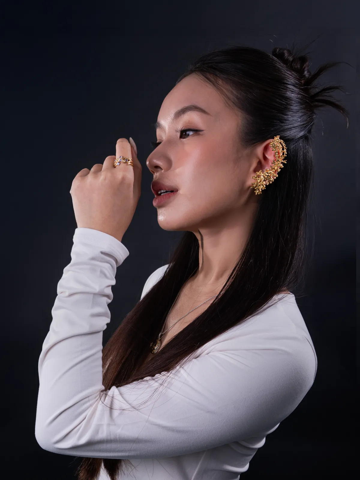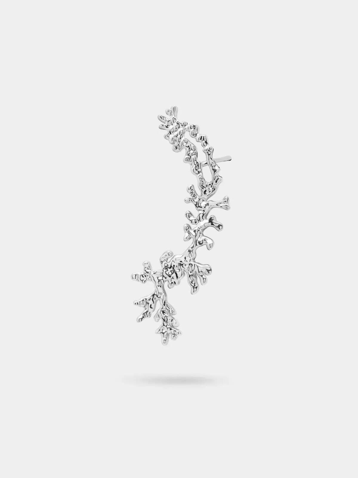 Dripping in marine drip. This ear cuff curves up your ear like branching coral and is textured, asymmetrical, and full of attitude. Sea-inspired but made for the streets. Style tip: mix with hoops for an elevated ear game.