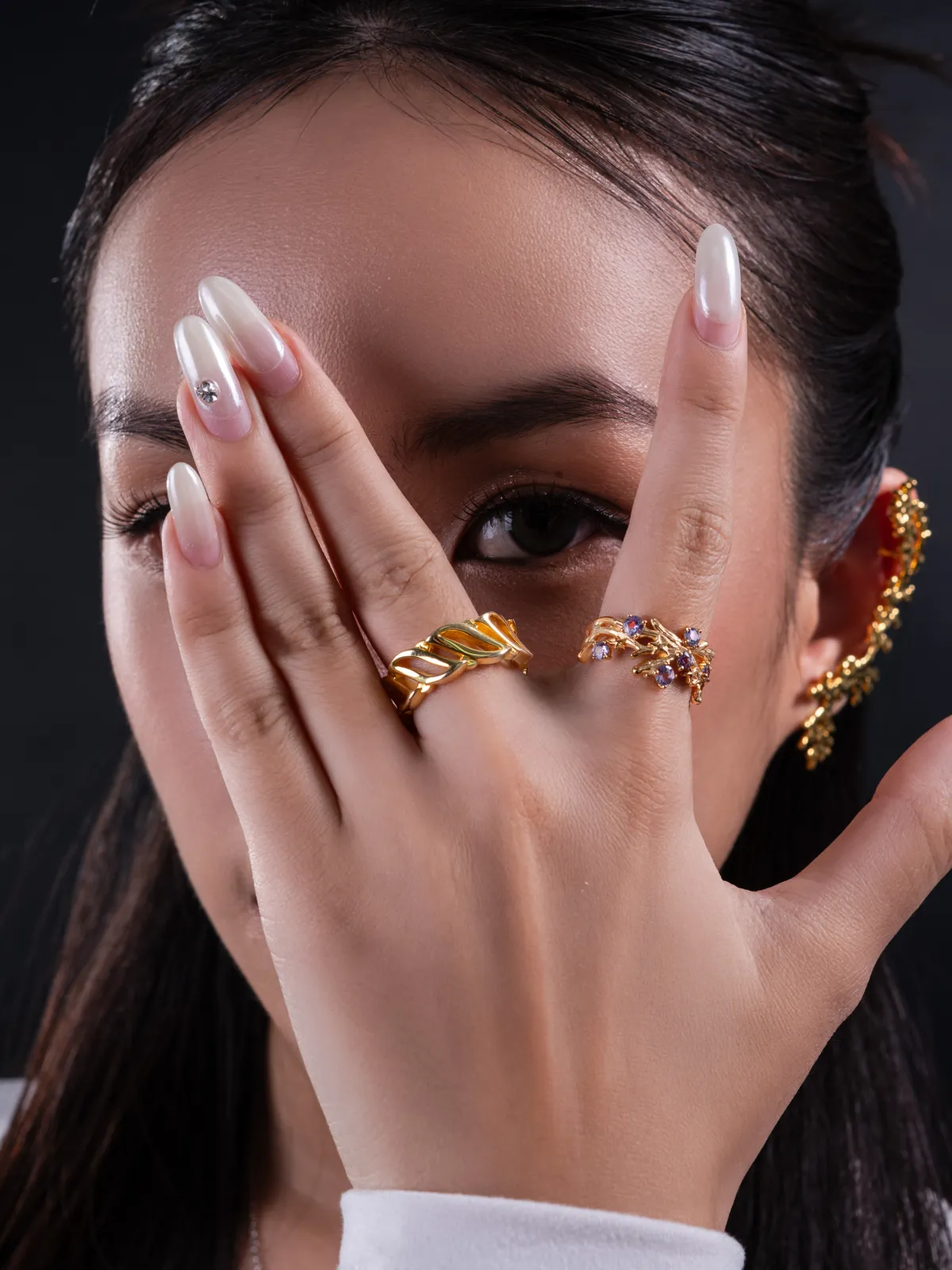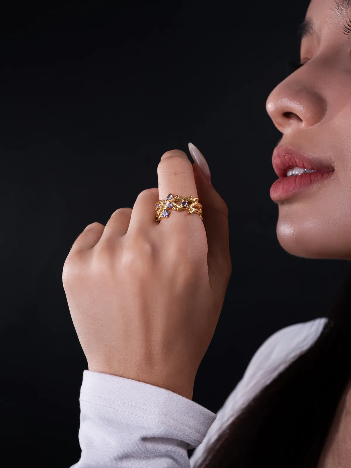 It’s giving underwater royalty. This gold ring wraps around your finger like branching coral, topped with oceanic sparkle. For when you wanna serve mermaid-core, but make it majestic.