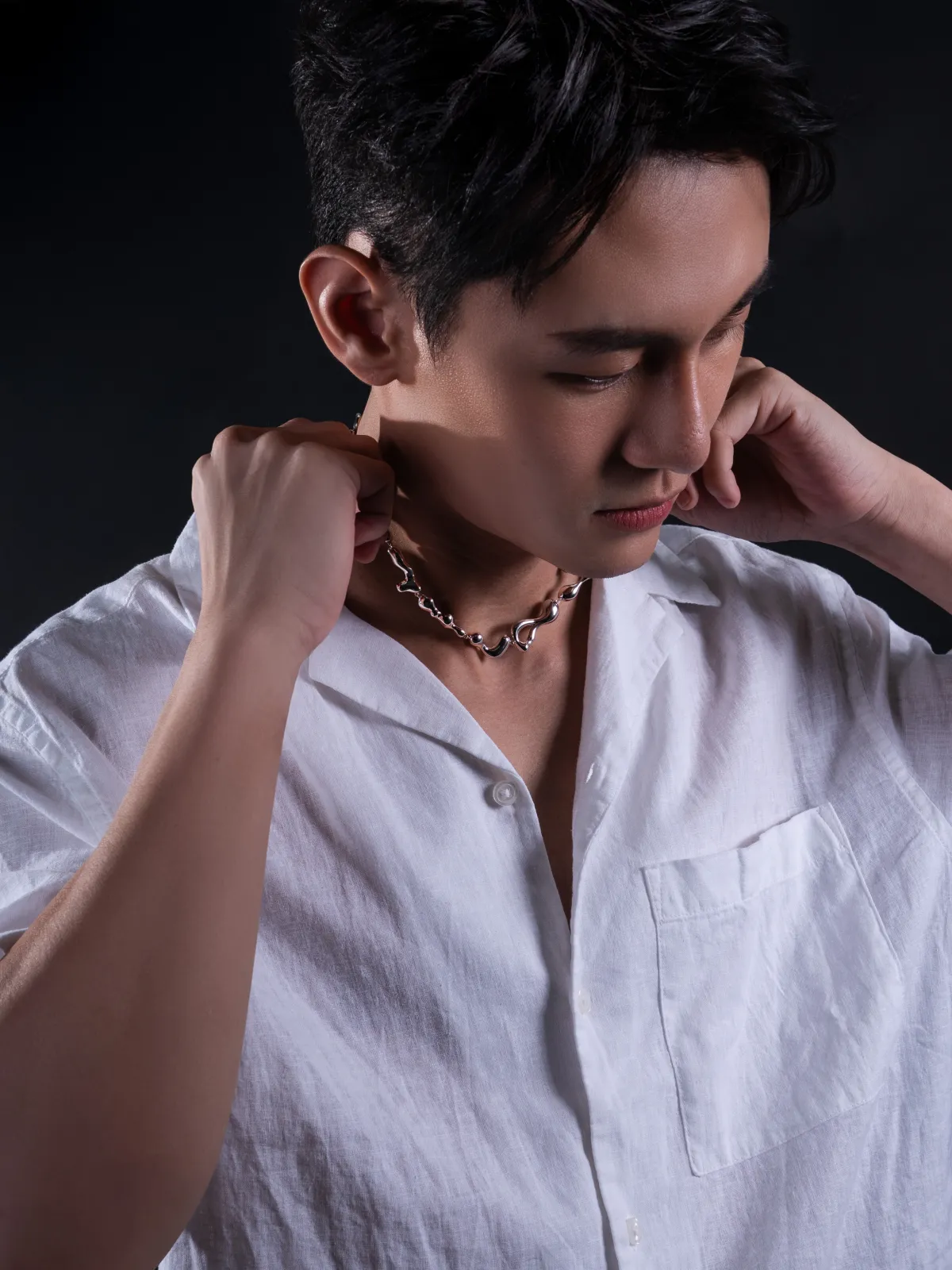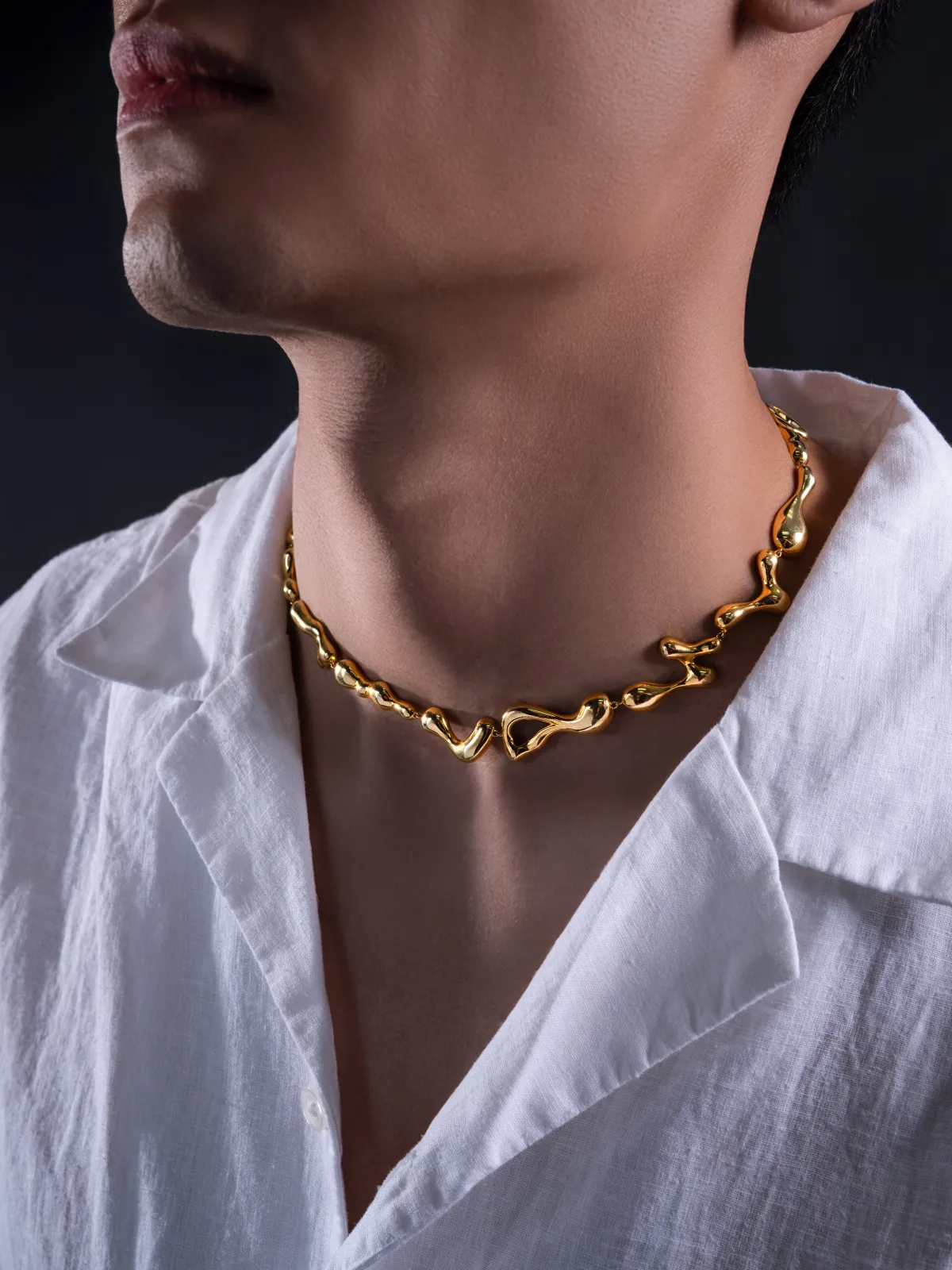 This one’s literally dripping. With its fluid, wavy links inspired by water in motion, this choker brings the actual definition of drip. Statement? Yes. Heavy? Never. Just smooth, cool, and effortlessly iconic.